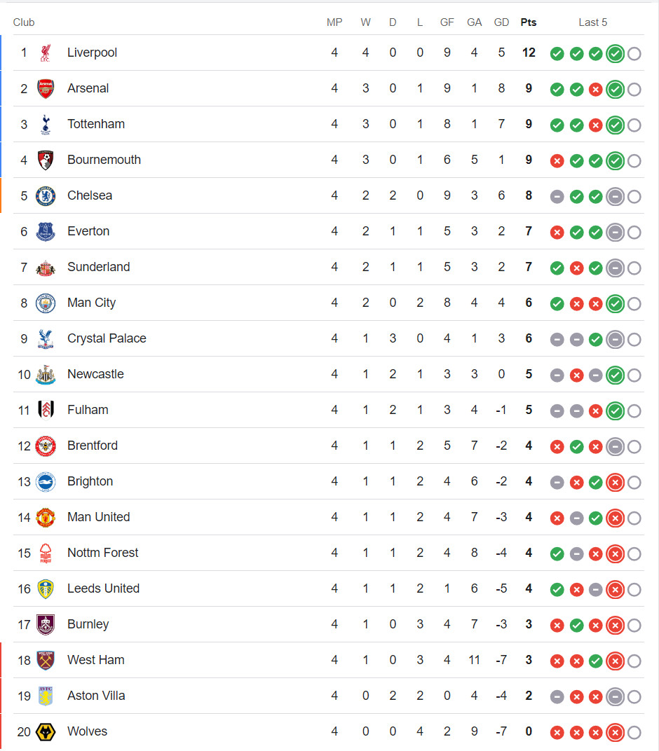 - Arsenal thắng 3 trận sân nhà liên tiếp với tổng tỷ số 9-0, chưa để lọt lưới.